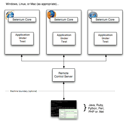 Selenium Server: The Selenium Server works as a middleman between your test scripts and the browser. It takes the commands from your tests, injects a JavaScript program called Selenium Core into the browser, and then executes those commands within the browser’s own JavaScript engine.